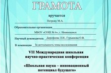 Поздравляем Петрова Максима, обучающегося 11А класса - победителя в номинации "За актуальность темы исследования" международной школьной научно-практической конференции "Школьная наука - инновационный потенциал будущего" (учителя Дорофеева Лилия Ильинична, Гурьянова Ольга Владимировна).