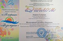 Поздравляем фольклорный ансамбль "Ладушки" (2Б класс школы №6), который стал лауреатом второй степени открытого республиканского конкурса народного творчества "Янарыш". Наши школьники посещают кружок в ДТДиМ им. И.Х.Садыкова. Детей на конкурс подготовили ПДО Шерниеа Н.Н. и классный руководитель Алиева О.Г.
