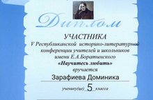 V Республиканская историко-литературная конференция учителей и школьников имени Е.А.Боратынского "Научитесь любить". Андриевская Вероника, Зарафиева Доминика, 5Б класс.