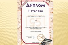 Первое место в Международной олимпиаде по математике "Пятью пять" 14.12.2021