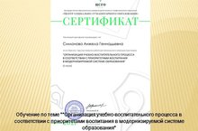 Заместитель директора по воспитательной работе Симонова Анжела Геннадьевна прошла обучение в Центре социально гуманитарного образования города Казани по теме ""Организация учебно-воспитательного процесса в соответствии с приоритетами воспитания в модернизируемой системе образования"
