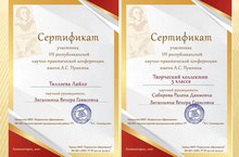 Поздравляем участников VII республиканской научно - практической конференции имени А С Пушкина (г.Лениногорск). Участие в конференции приняли учащаяся 6 “В” класса Тиллоева Лайло и коллектив 5 класса. ( Научный руководитель Зиганшина Венера Гависовна, Сабирова Ралена Даимовна.)