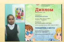 Поздравляем Воеводину Регину , обучающуюся 4 «Б» класса, классный руководитель Фаттахова В.А, с победой на дистанционной олимпиаде