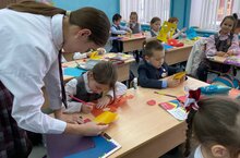 Активисты "Движения первых" совместно с советником директора Каюмовой Екатериной Марселевной провели мастер-класс для 1 класса по изготовлению открыток ко Дню матери.