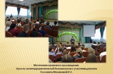 27 сентября 2017 года с учащимися 9-х классов МБОУ "СОШ № 6" НМР РТ состоялась беседа-урок по профилактике терроризма. Депутат Госсовета Мезикова И.Х. затронула вопросы государственного устройства Российской Федерации и Республики Татарстан, полномочия депутатов Госсовета и депутатомв муниципальных образований.