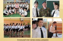 Впервые наша школа приняла участие в муниципальном смотре –конкурсе строя и песни среди взводов девушек, который прошел 4 февраля 2017 года на базе Гимназии №13. Девушки выступили очень достойно, завоевали диплом в номинации “Статен в строю – силен в бою”. Русскова Рената стала лучшей в интеллектуальном конкурсе.