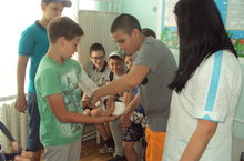 Фельдшер школы Махмутова Г.И. провела беседы «Друзья Мойдодыра и наше здоровье», «Путешествие в страну Витаминию», «Солнечный ожог. Первая помощь при ожоге», «Правильное питание». Дети смогли во время ролевых игр и практических занятий потренироваться в наложении шин при переломах и кровотечениях, в оказании первой медицинской помощи. Все дети в лагере научились находить пульс. Гульназ Ильгизаровна подготовила викторину «Зеленая аптечка» и провела расследование «Куда пропал аппетит?» и конечно проводила витаминизацию. Ребята много времени находились на свежем воздухе, большинство игр и спортивных занятий проводилось на улице, имели возможность отдохнуть и укрепить свое здоровье.