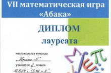 Поздравляем команду юных математиков нашей школы «Эврика 6» : Окунев Роман, Зиганшин Дмитрий, Аблатыпов Денис, Валиев Равиль –лауреатов VII Математической игры «Абака». Педагог Дорофеева Л.И.