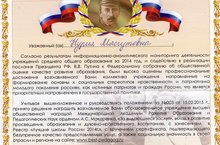 По результатам рейтинга в 2014 году наша школа вошла в число 100 лучших школ Республики Татарстан, на основании Положения № 003 от 15.02.2015 принято решение наградить нашу школу Высшей общественной наградой международной Академией развития Образования и педагогических наук Орденом А.С.Макаренко " За выдающиеся заслуги, вклад в развитие просвещения, образования и духовно -нравственного воспитание" с занесением в Реестр "Лучшие школы России 2014" с вручением сертификата, подтверждающего безупречное качество предоставляемых услуг, а также социальную значимость в своей отрасли и регионе.