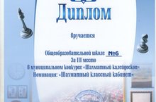Поздравляем учащихся 3"А"класса и кл. руководителя Набиеву М.Р. за III место в Муниципальном конкурсе "Шахматный калейдоскоп" в номинации "Шахматный классный кабинет"