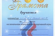 Поздравляем Никитину Татьяну, учащуюся 9 Б кл., занявшую III место в зональном этапе военно -спортивной игре "Зарница" в беге на 1 км.