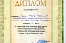 Команду девушек МБОУ "СОШ №6" НМР РТ, занявшую II место в зональном этапе Чемпионата Школьной баскетбольной лиги "КЭС -БАСКЕТ" среди команд общеобразовательных организаций Республики Татарстан сезона 2014-2015 учебного года.