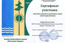 Поздравляем участников заочного конкурса творческих работ "Моя родословная" : Хайрутдинова Нияза( педагог Юнусова Л.Ф.), Шамсутдинову Ангелину (педагог Ильязова Г.Н.), Тамурзина Станислава ( педагог Каюмова В.А.), Коловскую Полину ( педагог Гимадеева Л.М.) с получением сертификатов.
