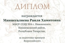 Минегулова Венера Магсумовна, учитель математики, награждена благодарственным письмом за хорошую математическую подготовку школьника к Открытому турниру математических игр им. Н.Г. Чеботарева.