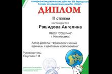 Ученица нашей школы - Рашидова Ангелина - награждена Дипломом III степени за участие во Всероссийском юношеском конкурсе исследовательских работ им.В.И.Вернадского.