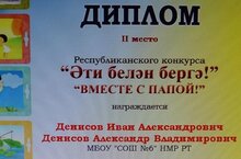 Поздравляем ученика 2Б класса Денисова Ивана и его папу - победителей Республиканского конкурса "Вместе с папой! " в номинации "Мир открытий с папой" (куратор Сердечная Ксения Сергеевна).