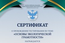 Учитель начальных классов Сагдиева Ирина Владимировна успешно прошла тестирование по теме "Основы экологической грамотности".