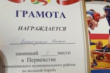 Поздравляем Валиуллина Ислама, занявшего 1 место в Первенстве Нижнекамского муниципального района по вольной борьбе среди юношей 2006-2007 г.р.