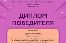 Активное участие и дипломы победителей Всероссийской онлайн-олимпиады "Безопасные дороги" получили учащиеся 7Б класса (классный руководитель Гимадеева Л.М.).