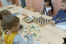 В пришкольном лагере "Непоседы" дети с удовольствием играют в шашки и шахматы.