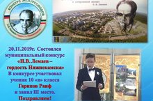 Гарипов Раиф ученик 10 класса стал призером в Муниципальном конкурсе "Лучший экскурсовод" (педагог (Сидорова ОН.)