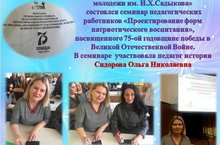 21 ноября в МБУ ДО "Дворец творчества детей и молодежи имени И.Х.Садыкова" состоялся Региональный семинар, на котором выступила педагог школы Сидорова О.Н. посвященный 75- ой годовщине Победы в Великой Отечественной войне. в секции "Межведомственное взаимодействие как ресурс совершенствования патриотического воспитания"