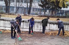 Учащиеся 6Б класса дружно вышли на уборку школьной территории.