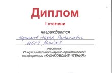 23 апреля в КИУ им. В.Г. Тимирязова состояласьVI муниципальная научно - практическая конференция "Казаковские чтения" В ней приняли участие учащиеся 8 а и 9 а класса.