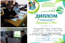 VI Республиканский экологический фестиваль школьников «Природа и мы». Участниками фестиваля стали наши учащиеся 8в класса Гайнутдинова Рената и Гараев Амир, которые в номинации "Исследователи" заняли III место и были награждены грамотами и памятными подарками. -