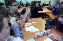 На базе МБОУ "СОШ №19" прошла очередные муниципальная интеллектуальная игра «ЧТО?ГДЕ?КОГДА?» среди 8 классов. Команда состоящая из учащиеся 8В класса Волкова Софья, Молков Кирилл, Мелентьев Андрей и Уваров Артем выступили не плохо, хоть в призовую тройку не попали. Они решили, что ещё им нужно много читать и готовиться, чтобы попасть в тройку лучших команд.