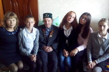 Учащиеся 8В класса решили присоединиться и поздравить ветерана ВОВ Гиззатуллина Галимхана. Он инвалид по зрению и самостоятельно не может идти на праздник в школу. Мы поздравили его дома и сделали небольшие подарки. Он очень обрадовался к приходу детей.Давайте будем милостивы и благодарны к пожилым людям!