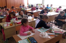 13 февраля начались занятия будущих первоклассников. В этот день сели за парты 65 малышей, которые с удовольствием писали, считали и знакомились с азами азбуки и школьной жизни.