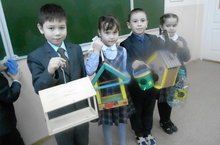 В нашем городе остались зимовать воробьи, синицы, вороны …. Трудно птицам зимой. Ученики 1В класса решили помочь птицам. Они, вместе с родителями, сделали кормушки.