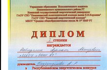 В номинации «Журналистика» наша ученица 10 а класса Шарипова Алия заняла почётное I-место, в номинации «Научно-исследовательские проекты» учащиеся 9а класса Тагиров Булат и Чермаков Никита - II-место, ученица 8б класса Биктагирова Айгуль - III-место, ученица 8а класса Гатауллина Земфира получила диплом лауреата. В номинации «Информационные технологии» представила свой проект Галяутдинова Диана, ученица 11а класса. За проект Диана получила шквал аплодисментов и была удостоена диплома лауреата конкурса.