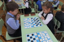 Сегодня прошло первенство школы среди первоклассников по шашкам. Первое место заняли учащиеся 1 «а» класса, второе место - учащиеся 1 «в» класса, третье место - у 1 «б» класса. Абсолютный чемпион среди девочек Шайдуллина Диляра - ученица 1 «а» класса, а среди мальчиков первое место разделили между собой также учащиеся 1 «а» класса Монахов Володя и Михайлов Данил.