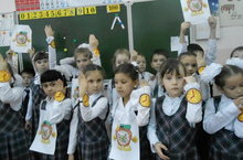 Учащиеся 1В класса участвовали в конкурсе физминуток. Они исполнили песню «Часики» на татарском языке. Ещё раз напомнили детям, что опаздывать на уроки нельзя. Поделились с остальными первоклассниками, как нужно выполнять гимнастику для пальцев рук.