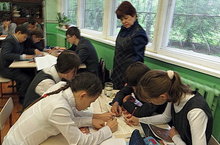 Хотите научиться составлять композиции декоративной росписи в разных видах народно - прикладного искусства? Тогда приходите на урок к Вяселевой Фаиле Мустафаевне, которая поможет разобраться в особенностях композиций жостовской, городецкой, хохломской росписи. Ученики 7 б класса продемонстрировали присутствующим гостям умение работать в команде по сингапурской технологии.