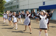 Наши одиннадцатиклассники – неутомимый и творческий народ. После фееричного выступления ребята организовали во дворе школы флешмоб для учителей, родителей и учеников. В конце выступления выпускники произвели прощальный салют из воздушных шаров.