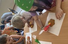 Сегодня в пришкольном оздоровительном лагере «Непоседы» прошло шоу «Кондитер». Ребята, под руководством профессионала, украшали пряники. Каждый ребёнок раскрашивал пряник по своей задумке. Дети соблюдали все технологии по изготовлению: контур, заполнение пустоты, узор поверх цвета, сушка. «Непоседы» остались довольны своими пряниками.