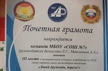 1 июня - День Защиты Детей. Автогородок совместно с ГИБДД вручили грамоты и памятные подарки победителям конкурса "Безопасное колесо" и за конкурс агитбригад "Давай Дружить Дорога". Наша команда заняла достойное 3 место среди 20 школ города и района. Поздравляем вас, ребята!