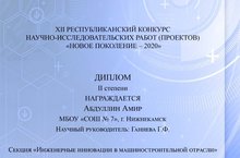 Республиканский конкурс научно-исследовательских работ (проектов) «Новое поколение – 2020» (КНИТУ-КАИ).