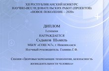 В секции Здоровьесберегающие технологии, безопасность жизнедеятельности человека Садыков Шамиль - I место. Поздравляем! Молодец! -