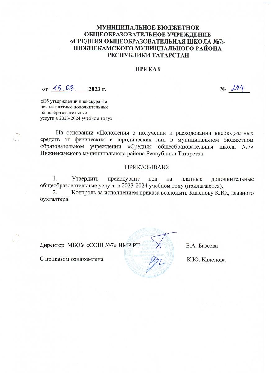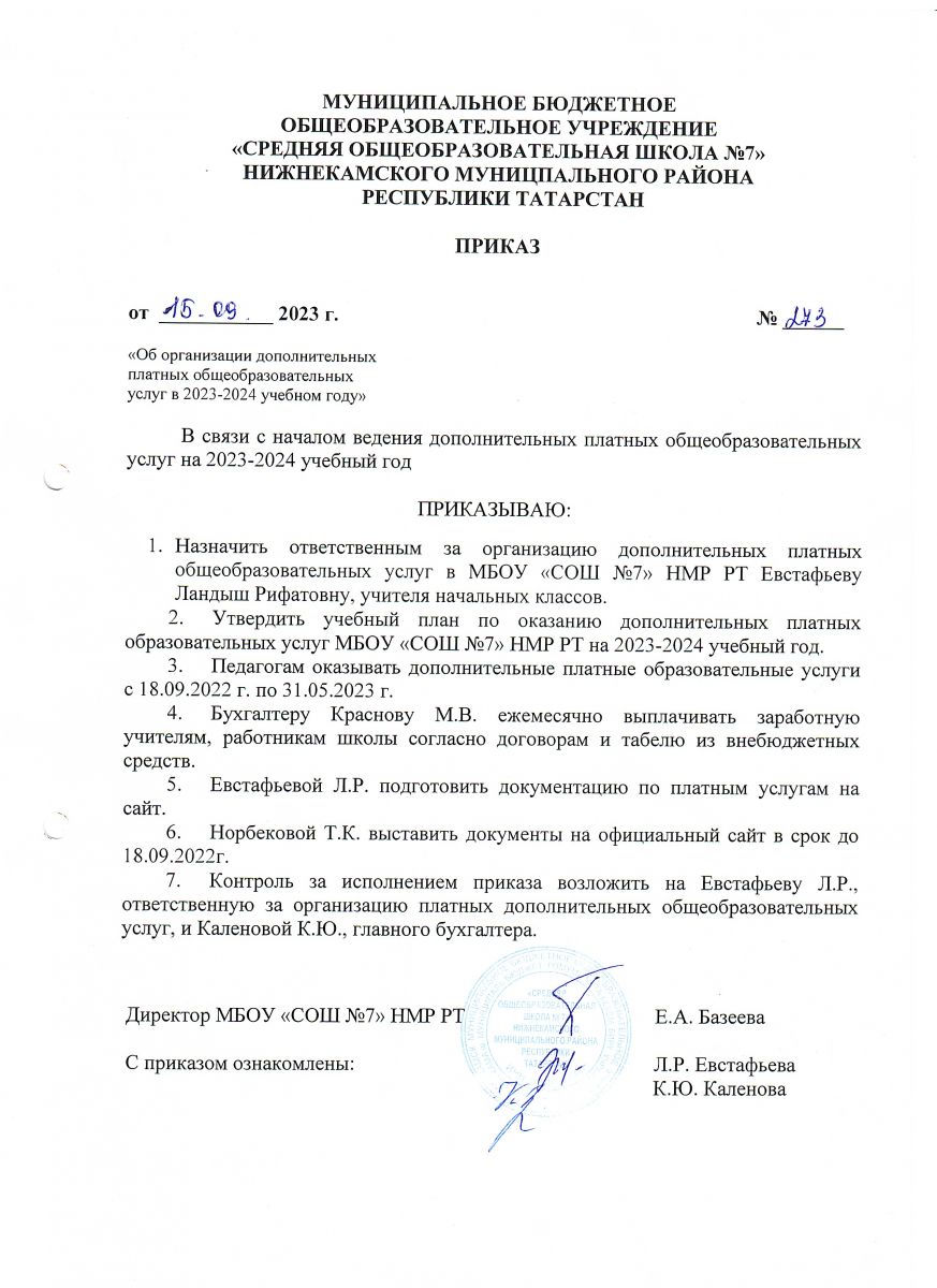 Приказ об организации платных общеобразовательных услуг на 2023-2023 уч. год