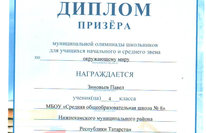 По русскому языку – Зиновьев Павел, 4 класс (учитель Нурмухаметова Э.В.);