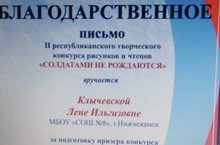 Поздравляем учителя изобразительного искусства Клычевскую Л.И. за подготовку призёра творческого конкурса «Солдатами не рождаются»!