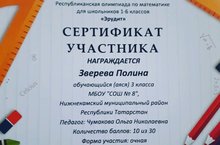 Учащиеся 1-6 классов нашей школы получили сертификаты участника Республиканской олимпиады "Эрудит" (математика, русский язык, окружающий мир).