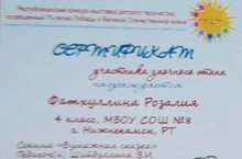 Ученица 4А класса Фатхуллина Розалия приняла участие в заочном этапе Республиканского конкурса выставки детского творчества в рамках 75-летия Победы в Великой Отечественной войне. Педагог Шайдуллина В.И.
