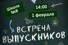 Школа №8 приглашает на ДЕНЬ ВСТРЕЧИ ВЫПУСКНИКОВ, который состоится 1 февраля в 14:00, в актовом зале. Школьные года прошли, зато остались дорогие сердцу люди, с которыми, безусловно, приятно встретиться и вспомнить, как это было! Как здорово узнать новости своих одноклассников и учителей, поэтому будем рады, если присоединитесь!