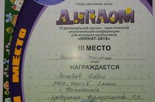 Ученик 3б класса Зиновьев Павел стал призером Региональной научно-практической конференции "Юннат-2019" (рук-ль: Нурмухаметова Э.В.).