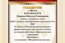 Поздравляем учителя английского языка Гришину Н.Г. с победой в Республикансокм конкурсе проф.мастерства "Потенциал" в номинации "Методическая копилка".